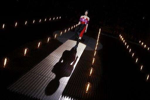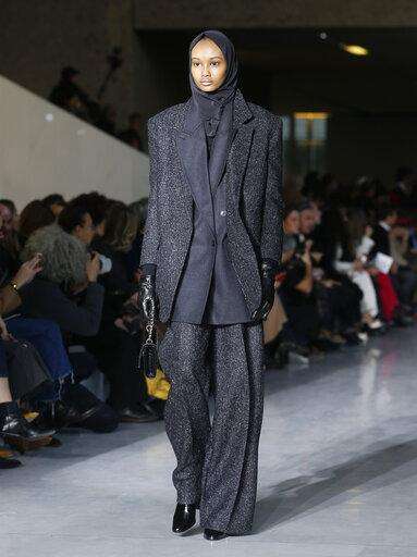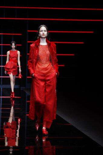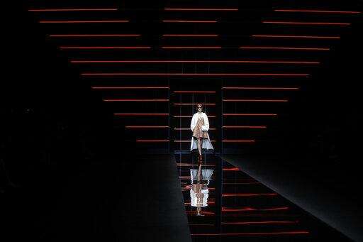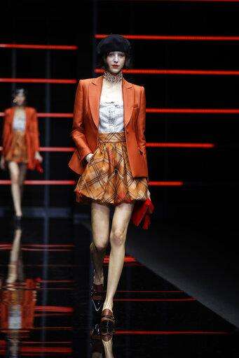 A model wears a creation as part of the Emporio Armani women's Fall-Winter 2019-2020 collection, that was presented in Milan, Italy, Thursday, Feb.21, 2019. (AP Photo/Luca Bruno)