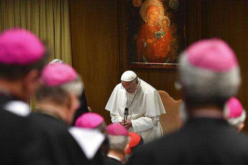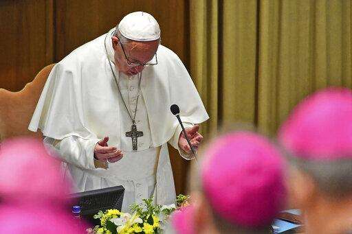 Pope Francis prays during the opening of a sex abuse prevention summit, at the Vatican, Thursday, Feb. 21, 2019. The gathering of church leaders from around the globe is taking place amid intense scrutiny of the Catholic Church's record after new allegations of abuse and cover-up last year sparked a credibility crisis for the hierarchy. (Vincenzo Pinto/Pool Photo via AP)