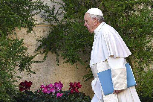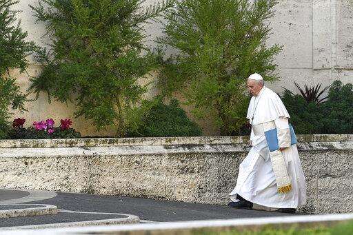 Pope Francis arrives for the opening of a sex abuse prevention summit, at the Vatican, Thursday, Feb. 21, 2019. The gathering of church leaders from around the globe is taking place amid intense scrutiny of the Catholic Church's record after new allegations of abuse and cover-up last year sparked a credibility crisis for the hierarchy. (Vincenzo Pinto/Pool Photo via AP)