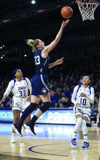 For the first time in seven games this month, UConn was outrebounded as Tulsa had a 41-39 advantage.