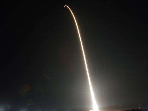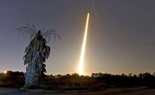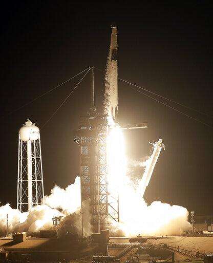 A SpaceX Falcon 9 rocket with a demo Crew Dragon spacecraft on an uncrewed test flight to the International Space Station lifts off from pad 39A at the Kennedy Space Center in Cape Canaveral, Fla., Saturday, March 2, 2019. (AP Photo/John Raoux)
