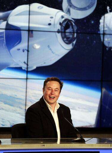 Elon Musk, CEO of SpaceX, speaks during a news conference after the SpaceX Falcon 9 Demo-1 launch at the Kennedy Space Center in Cape Canaveral, Fla., Saturday, March 2, 2019. (AP Photo/John Raoux)