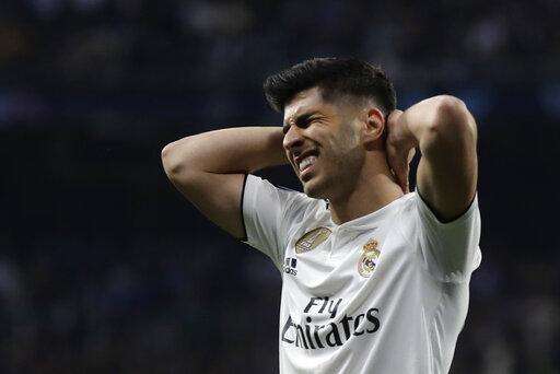 Real midfielder Marco Asensio reacts during the Champions League soccer match between Real Madrid and Ajax at the Santiago Bernabeu stadium in Madrid, Spain, Tuesday, March 5, 2019. (AP Photo/Manu Fernandez) The Associated Press