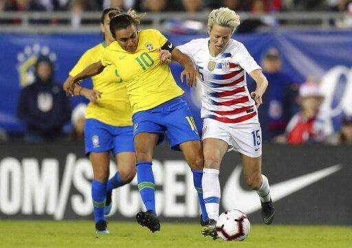 The United States played to a 2-2 draw with Japan in the tournament opener in Chester, Pennsylvania, and then tied England 2-2 in Nashville on Saturday. Brazil, ranked No. 10, lost all three of its matches.