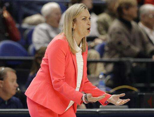 Clemson coach Amanda Butler directs her team against Louisville during the first half of an NCAA college basketball game in the Atlantic Coast Conference women's tournament in Greensboro, N.C., Friday, March 8, 2019. (AP Photo/Chuck Burton) The Associated Press