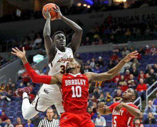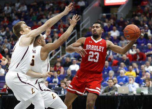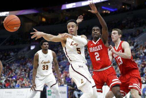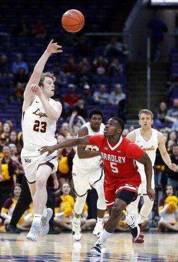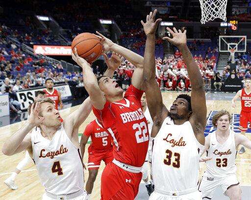 ST. LOUIS (AP) - Nate Kannell came off the bench to score 19 points, including what turned out to be the game-winning 3-pointer, and Bradley knocked out 2018 Final Four team Loyola-Chicago 53-51 on Saturday in the semifinals of the Missouri Valley Conference tournament.