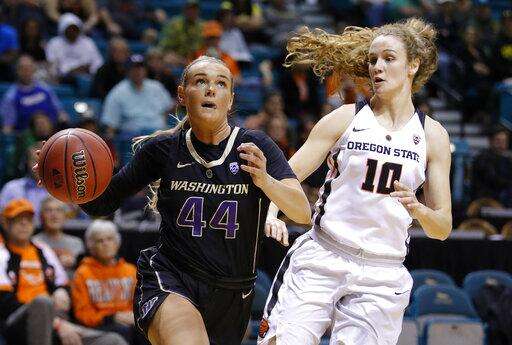 Trailing 55-53 midway through the fourth quarter, Peterson hit consecutive 3-pointers during an 8-0 run that gave Washington its biggest lead of the game. Joanna Grymek got Oregon State within four with 4:10 left. Melgoza hit a floater in the lane to make it 63-57 with just under 2 minutes left.