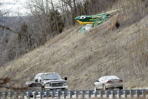 A rock outcropping painted by a local tattoo artist to resemble a frog greets visitors who follow the old Route 66 into Waynesville. Along with its sister city St. Robert, the military towns are dominated by the nearby Fort Leonard Wood, which has kept the county's population steadily around 50,000 for the past decade.
