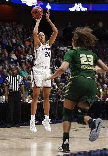 Her second 3-pointer gave the Huskies their first 20-point lead at 33-11, part of a 12-0 run that blew the game open.