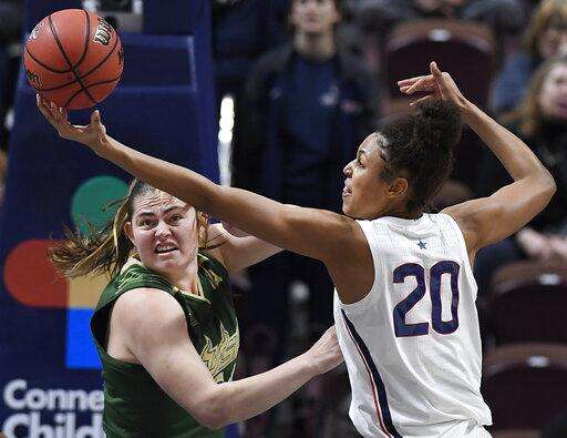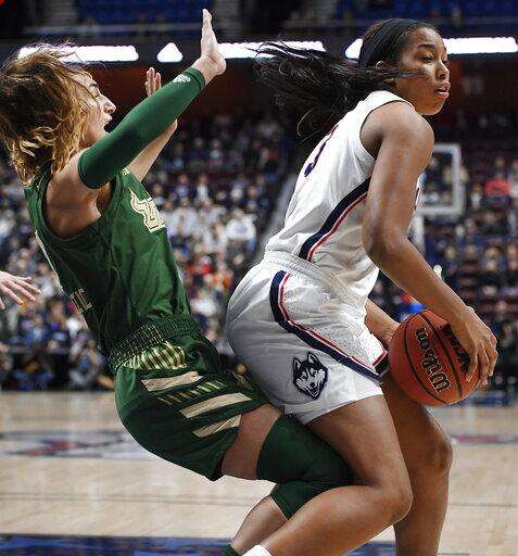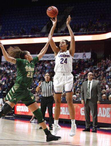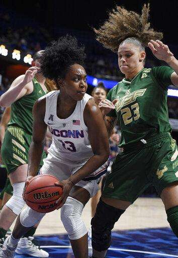The Bulls' injury issues make UConn's look minor in comparison. They lost leading scorer Kitija Laksa, a two-time All-AAC first-team selection, in their third game of the season to a right knee injury. Second-leading scorer Laura Ferreira was diagnosed with a heart ailment after 16 games. Redshirt freshman Silvia Serrat has sat out the entire season with a right knee injury and Beatriz Jordao, a 6-foot-3 freshman, who was averaging 11.3 points and 5.7 rebounds, suffered a season-ending left leg injury on Jan. 3. Tamara Henshaw left this game in the third quarter and spent the rest of the game with an ice pack on her right knee.