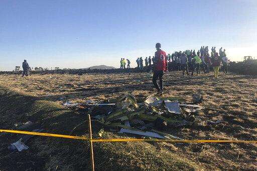 Rescuers search at the scene of an Ethiopian Airlines flight that crashed shortly after takeoff at the scene at Hejere near Bishoftu, or Debre Zeit, some 50 kilometers (31 miles) south of Addis Ababa, in Ethiopia Sunday, March 10, 2019. The Ethiopian Airlines flight crashed shortly after takeoff from Ethiopia's capital on Sunday morning, killing all 157 on board, authorities said, as grieving families rushed to airports in Addis Ababa and the destination, Nairobi. (AP Photo/Yidnek Kirubel) The Associated Press