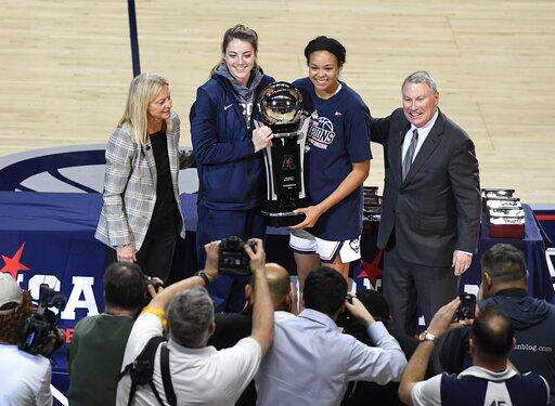 UNCASVILLE, Conn. (AP) - No. 2 UConn was forced to play the American Athletic Conference Tournament without injured All-American Katie Lou Samuelson and may have become a more complete team as a result.
