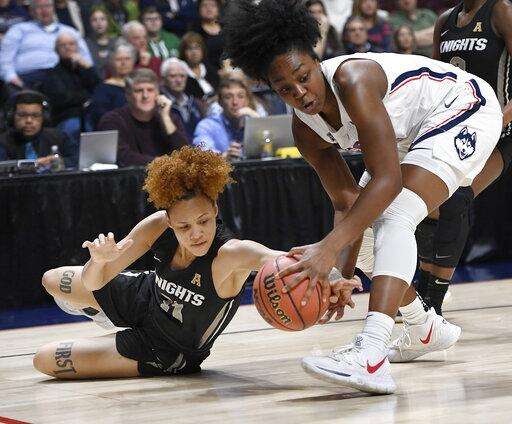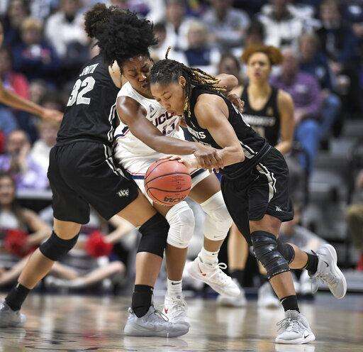 No. 2 UConn beats UCF 66-45, takes 6th straight AAC title