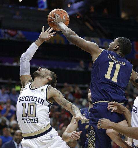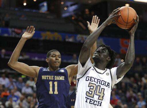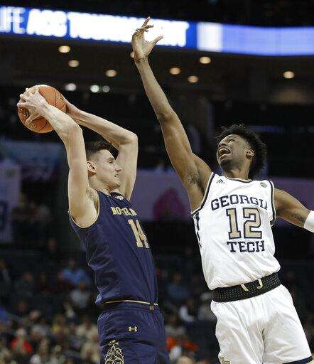 Notre Dame: Nate Laszewski had 14 points on the 3-pointers for the Irish before leaving late in the first half with a lower back bruise after landing hard on the floor. He left after a collision with Georgia Tech's Brandon Alston under the basket. Laszewski remained on the court for several minutes before being helped to the locker room by trainers. X-rays on his back were negative, but he didn't return. Brey didn't sound optimistic about Laszewski's chances of playing in the second round against Louisville. "We'll try and get him loose for tomorrow, but the group that played pretty much the whole second half may be the group we have to play," Brey said.