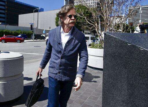 Actor William H. Macy arrives at the federal courthouse in Los Angeles, on Tuesday, March 12, 2019. Fifty people, including Macy's wife, actress Felicity Huffman and actress Lori Loughlin, were charged Tuesday in a scheme in which wealthy parents allegedly bribed college coaches and other insiders to get their children into some of the nation's most elite schools. Macy was not charged; authorities did not say why. (AP Photo/Alex Gallardo) The Associated Press
