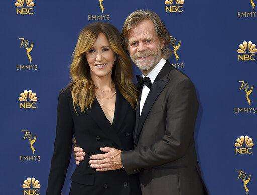 FILE - In this Sept. 17, 2018 file photo, Felicity Huffman, left, and William H. Macy arrive at the 70th Primetime Emmy Awards in Los Angeles. Huffman and Lori Loughlin were charged along with nearly 50 other people Tuesday, March 12, 2019, in a scheme in which wealthy parents bribed college coaches and insiders at testing centers to help get their children into some of the most elite schools in the country, federal prosecutors said. Court papers said a cooperating witness met with Huffman and Macy, at their Los Angeles home and explained the scam to them. The cooperator told investigators that Huffman and her spouse "agreed to the plan." (Photo by Jordan Strauss/Invision/AP, File)