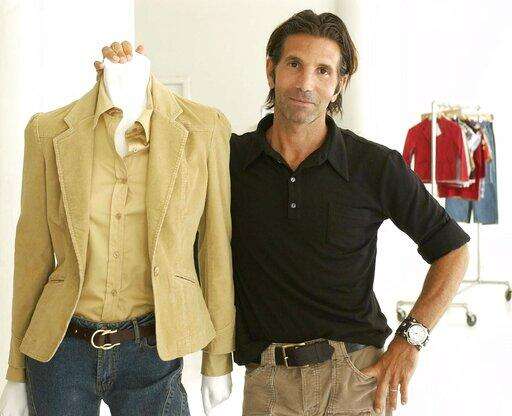 FILE - This May 15, 2002 file photo shows Los-Angeles based clothing designer Mossimo Giannulli posing with his fall preview clothing for Target department stores in New York. Giannulli and his wife, actress Lori Loughlin were charged along with nearly 50 other people Tuesday in a scheme in which wealthy parents bribed college coaches and other insiders to get their children into some of the most elite schools in the country, federal prosecutors said. (AP Photo/Kathy Willens, File)