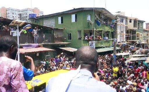 Onlookers crowded around in the densely populated neighborhood in Lagos, Nigeria's commercial capital and a city of some 20 million people.