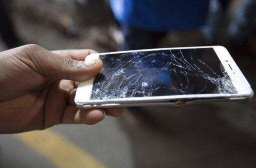 A migrant who claims he was beaten and got his mobile phone smashed by Croatian police while attempting to cross the border to Croatia shows his phone at a factory hall turned migrants facility in Bihac, Bosnia-Herzegovina, Wednesday, March 13, 2019. Rights group Amnesty International has accused European Union states of complacency in the "systematic, unlawful and frequently violent pushbacks" by Croatian border guards of thousands of asylum-seekers to squalid and unsafe refugee camps in Bosnia. (AP Photo/Darko Bandic)