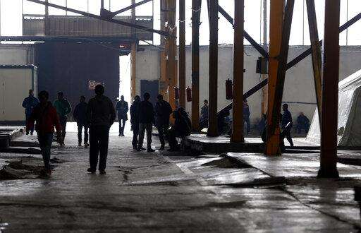 Migrants gather at a factory hall turned migrants facility in Bihac, Bosnia-Herzegovina, Wednesday, March 13, 2019. A leading rights group has accused European Union states of complacency in the "systematic, unlawful and frequently violent pushbacks" by Croatian border guards of thousands of asylum-seekers to squalid and unsafe refugee camps in Bosnia. (AP Photo/Darko Bandic)