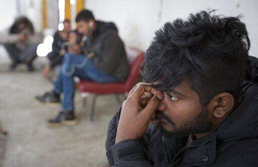 Migrants wait for medical assistance at a infirmary at a factory hall turned migrants facility in Bihac, Bosnia-Herzegovina, Wednesday, March 13, 2019. Rights group Amnesty International has accused European Union states of complacency in the "systematic, unlawful and frequently violent pushbacks" by Croatian border guards of thousands of asylum-seekers to squalid and unsafe refugee camps in Bosnia. (AP Photo/Darko Bandic)