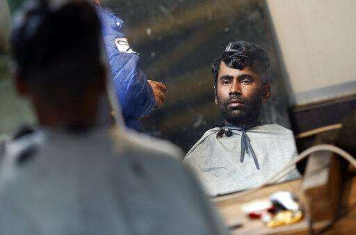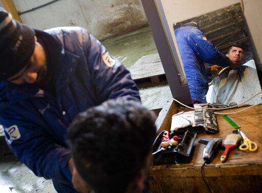 A migrant has haircut at a factory hall turned migrants facility in Bihac, Bosnia-Herzegovina, Wednesday, March 13, 2019. Rights group Amnesty International has accused European Union states of complacency in the "systematic, unlawful and frequently violent pushbacks" by Croatian border guards of thousands of asylum-seekers to squalid and unsafe refugee camps in Bosnia. (AP Photo/Darko Bandic)