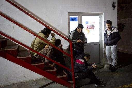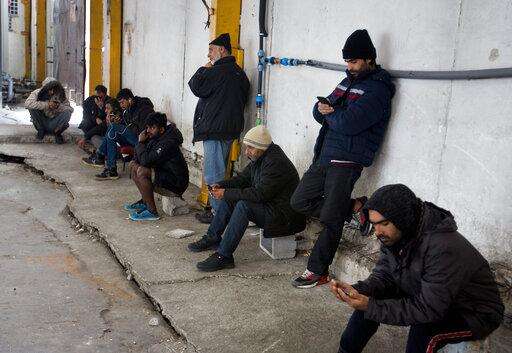 Migrants use their mobile phones at a factory hall turned migrants facility in Bihac, Bosnia-Herzegovina, Wednesday, March 13, 2019. Rights group Amnesty International has accused European Union states of complacency in the "systematic, unlawful and frequently violent pushbacks" by Croatian border guards of thousands of asylum-seekers to squalid and unsafe refugee camps in Bosnia. (AP Photo/Darko Bandic)