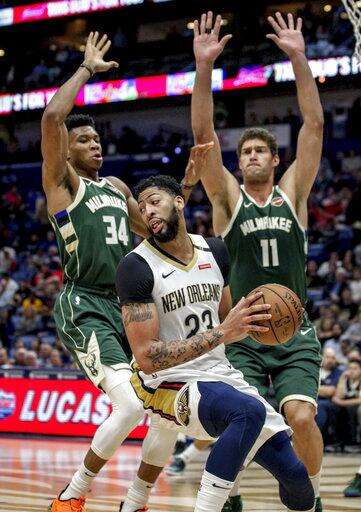 Bucks: Milwaukee swept the two meetings this season to win the season series for the first time in the 17 seasons since the Pelicans franchise relocated to New Orleans from Charlotte, North Carolina. The Bucks improved to 3-15 against the Pelicans on the road. . Milwaukee increased its lead over Toronto to three games for the best record in the NBA.