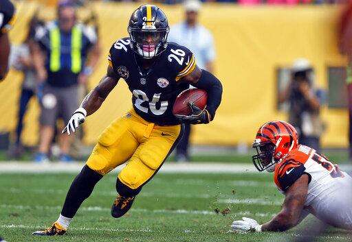 FILE - In this Oct. 22, 2017, file photo, Pittsburgh Steelers running back Le'Veon Bell (26) carries the ball during an NFL football game against the Cincinnati Bengals in Pittsburgh. A person with direct knowledge of the negotiations says the New York Jets and Bell have agreed to a deal early Wednesday morning, Mach 13, 2019, a person with direct knowledge of the negotiations told The Associated Press. The deal gives new coach Adam Gase and second-year quarterback Sam Darnold a big-time playmaker, arguably the best player at his position before Bell opted to sit out all of last season rather than sign a franchise tender with Pittsburgh. (AP Photo/Keith Srakocic, File) The Associated Press