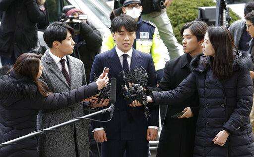 SEOUL, South Korea (AP) - Police on Thursday questioned two K-pop stars over interlocking sex scandals that have fascinated South Korea and prompted both men to announce they are retiring from the entertainment industry.