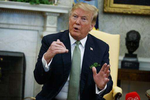 President Donald Trump speaks during a meeting with Irish Prime Minister Leo Varadkar in the Oval Office of the White House, Thursday, March 14, 2019, in Washington. (AP Photo/ Evan Vucci) The Associated Press