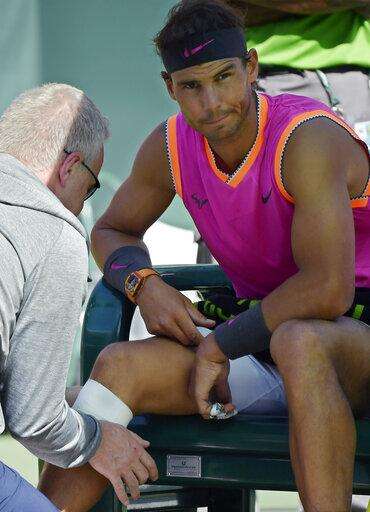 The 32-year-old Spaniard's right knee flared up in the second set of his 7-6 (2), 7-6 (2) victory over Karen Khachanov on Friday in the quarterfinals. He twice called for a trainer, who applied tape just below Nadal's knee. It was obvious that Nadal's movement was hampered.