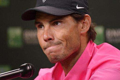 Nadal said he won't play again until the Monte-Carlo Masters on clay in mid-April.