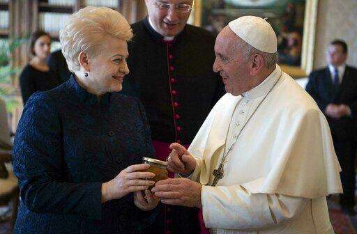 Pope Francis meets Lithuania President Dalia Grybauskaite during their private audience at the Vatican, Thursday, March 28, 2019. (Maurizio Brambatti/Pool photo via AP) The Associated Press