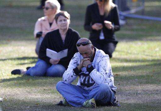 People listen during a national remembrance service in Hagley Park for the victims of the March 15 mosques terrorist attack in Christchurch, New Zealand, Friday, March 29, 2019. (AP Photo/Mark Baker)