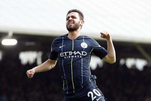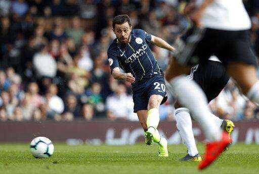 LONDON (AP) - Bernardo Silva and Sergio Aguero sent Manchester City back to the top of the Premier League after being gifted goals by Fulham to seal a 2-0 victory on Saturday.