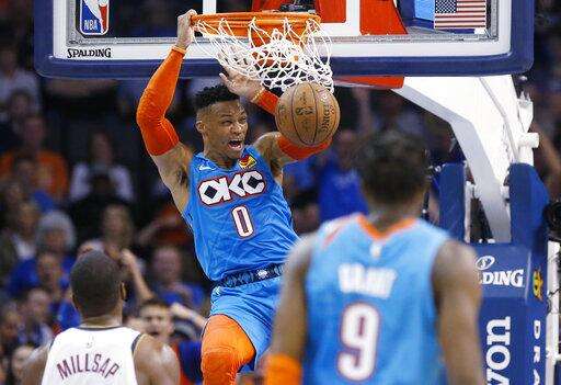 Russell Westbrook had 27 points, nine rebounds and nine assists, and Paul George had 25 points and nine rebounds for the Thunder.