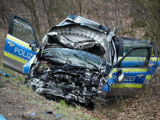 The dpa news agency, citing police, reported that three people in a police vehicle were seriously injured in the traffic crash while the two people in the other car died.