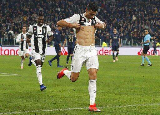 FILE - In this Wednesday, Nov. 7, 2018 file photo, Juventus forward Cristiano Ronaldo celebrates after scoring his side's opening goal during the Champions League group H soccer match between Juventus and Manchester United at the Allianz stadium in Turin, Italy. Perhaps those perfectly sculpted abdominal muscles that Cristiano Ronaldo constantly shows off on social media are not just for vanity purposes. Ronaldo’s well-documented fitness has enabled him to stay remarkably healthy throughout his glittered career. With the Juventus striker currently working his way back from a minor right thigh muscle issue, it’s worth remembering how few matches he has missed due to injury. Before his injury, Ronaldo played in 36 of Juve’s 39 matches in all competitions this season _ starting 34 of them. The only times he didn’t play were because coach Massimiliano Allegri wanted to rest him, or because he was suspended. (AP Photo/Antonio Calanni, File) The Associated Press