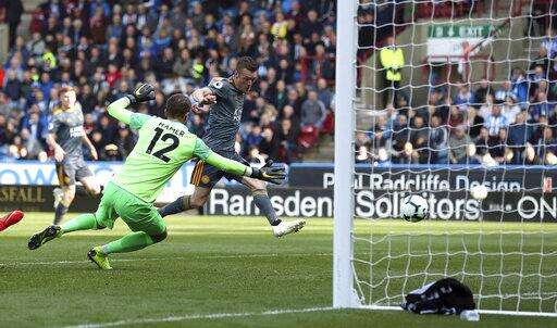HUDDERSFIELD, England (AP) - Jamie Vardy scored twice as Leicester beat Huddersfield 4-1 on Saturday to make it four successive wins in the Premier League.