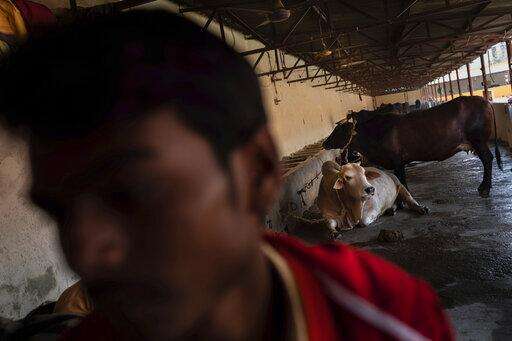 In this Wednesday, Dec. 12, 2018 photo, cows rest in a barn at Baghambari Math Gaddi in Prayagraj, India. Cows are considered sacred in Hindu-majority India, and slaughtering them or eating beef is illegal or restricted across much of the country. (AP Photo/Bernat Armangue)