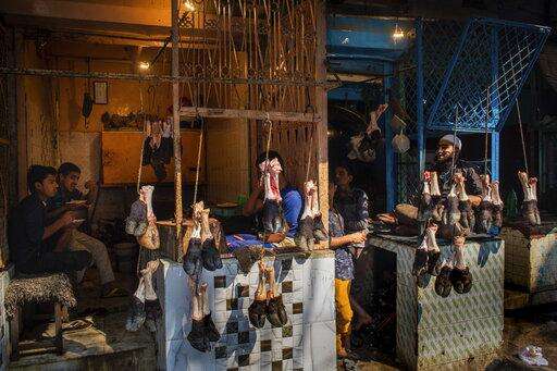 In this Monday, Nov. 26, 2018 photo, Muslims selling meat wait for customers in Lucknow, Uttar Pradesh, India. Since Indian Prime Minister Narendra Modi's nationalist Bharatiya Janata Party-led government came to power in 2014, several Indian states have banned the slaughter of cows, sacred to Hindus, giving rise to vigilantes and dozens of lynchings of Muslims, a minority group who have traditionally run meat shops and slaughterhouses. (AP Photo/Bernat Armangue)