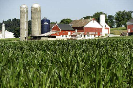 In this July 11, 2018 file photo, a field of corn is seen on a farm in Lancaster County, Pa. The latest Census of Agriculture shows the number of U.S. farms and ranches has fallen but the remaining operations are larger and are responsible for a higher percentage of agricultural sales. The U.S. Department of Agriculture released the 2017 Census of Agriculture on Thursday, April 11, 2019. (AP Photo/Matt Slocum, File) The Associated Press