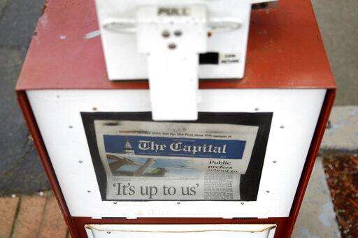 A copy of the day's Capital Gazette newspaper rests in a newsstand, Monday, April 15, 2019, in Annapolis, Md. The Pulitzer Prize board awarded the Capital Gazette a special citation Monday for their response to a 2018 shooting that left five employees dead. (AP Photo/Patrick Semansky) The Associated Press