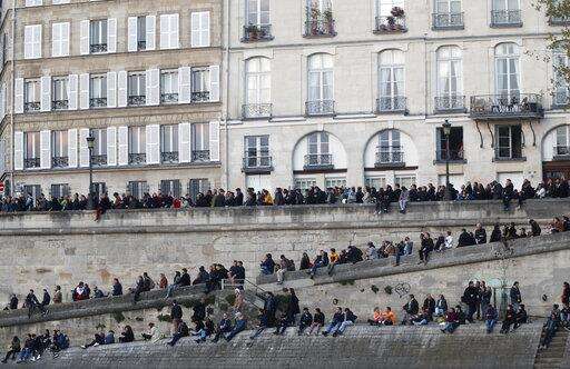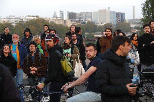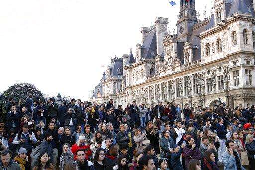 PARIS (AP) - Some kneeled, some folded their hands to make silent entreaties. Others sang with their eyes focused on the sky that had gone from blue to yellow and orange, and filled with acrid smoke.