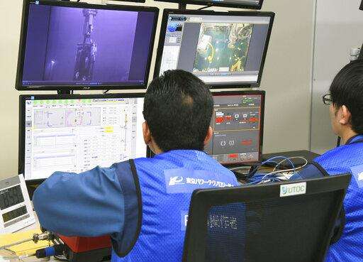 Tokyo Electric Power Co. workers remotely make operation for removing fuels at Unit 3 of Fukushima Dai-ichi nuclear plant, in Okuma, Fukushima Prefecture, northeastern Japan Monday. April 15, 2019. The operator of the tsunami-wrecked nuclear plant has begun removing fuel from a cooling pool at one of three reactors that melted down in the 2011 disaster, a milestone in the decades-long process to decommission the plant. The work is carried out remotely from a control room about 500 meters (yards) away because of still-high radiation levels inside the reactor building that houses the pool. (Kyodo News via AP) The Associated Press