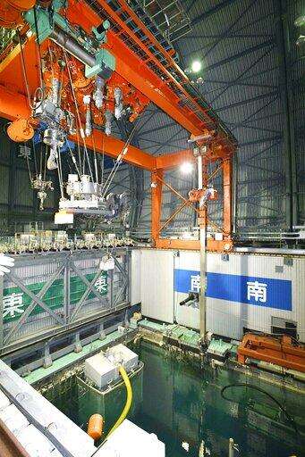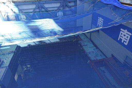 FILE - In this Jan. 25, 2018, file photo, a cooling pool where a total of mostly used 566 sets of fuel rods are stored underwater and covered by a protective net, waits to be removed in a step to empty the pool at Unit 3 of the Fukushima Dai-ichi nuclear power plant ahead of a fuel removal from its storage pool in Okuma, Fukushima Prefecture, northeast Japan. The photo was taken when an installation of a dome-shaped rooftop cover housing key equipment is near completion at the Unit 3 reactor. The Tokyo Electric Power Co. said Monday, April 15, 2019, workers started removing the first of 566 fuel units from the pool at Unit 3, one of three reactors whose cores melted through. (AP Photo/Mari Yamaguchi, File) The Associated Press