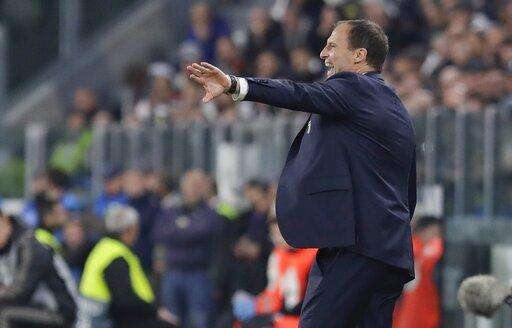 Juventus coach Massimiliano Allegri gestures during the Champions League, quarterfinal, second leg soccer match between Juventus and Ajax, at the Allianz stadium in Turin, Italy, Tuesday, April 16, 2019. (AP Photo/Luca Bruno) The Associated Press