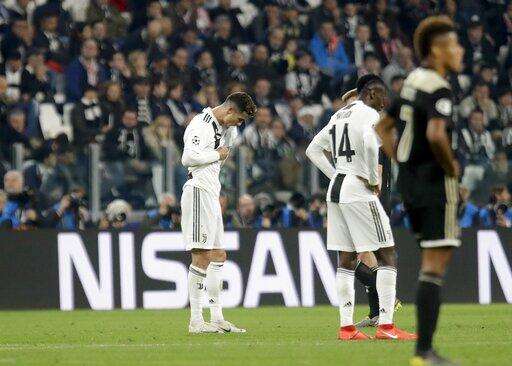 Juventus' Cristiano Ronaldo walks off the pitch at the end of the Champions League, quarterfinal, second leg soccer match between Juventus and Ajax, at the Allianz stadium in Turin, Italy, Tuesday, April 16, 2019. Ajax won 2-1 and advances to the semifinal on a 3-2 aggregate. (AP Photo/Luca Bruno) The Associated Press