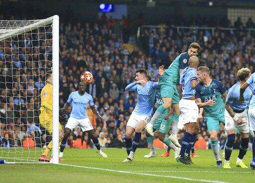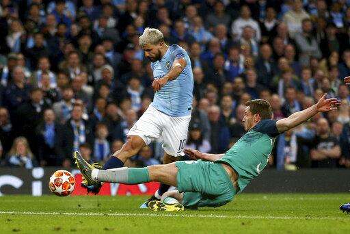MANCHESTER, England (AP) - More than two minutes into stoppage time, Manchester City forward Raheem Sterling slid across the field and puffed his chest to the crowd, roaring in elation. Tottenham players collapsed to the turf, some flat on their backs, forlorn and heartbroken.